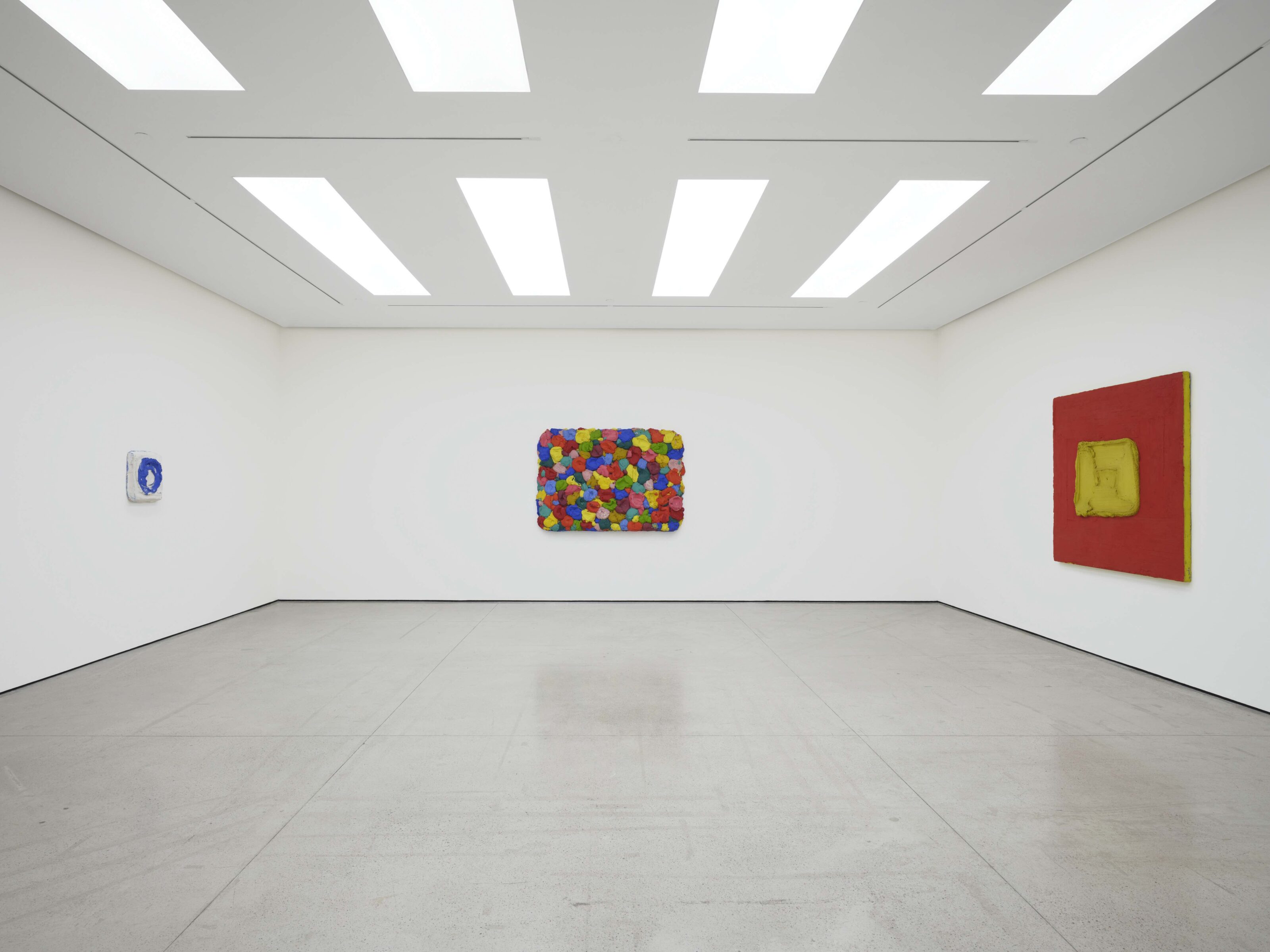 Bogart was primarily an abstract painter who immersed himself in the formal concerns of painting. Foregrounding gesture, colour and the physical materiality of paint itself, his works are characterised by their rich, almost sculptural accumulations of painted matter. Working through numerous stylistic investigations, including figuration, pointillism and cubism, from the late 1950s onwards he focused exclusively on abstraction using his own signature medium: a dense mix of pure pigments, oils and water combined with other undisclosed materials. Constantly adapting the composition of his paint, he was able to achieve a variety of thicknesses, intensities and textural effects, ‘building’ with paint to fuse gesture with matter in muscular works that forcefully assert their three-dimensional presence.