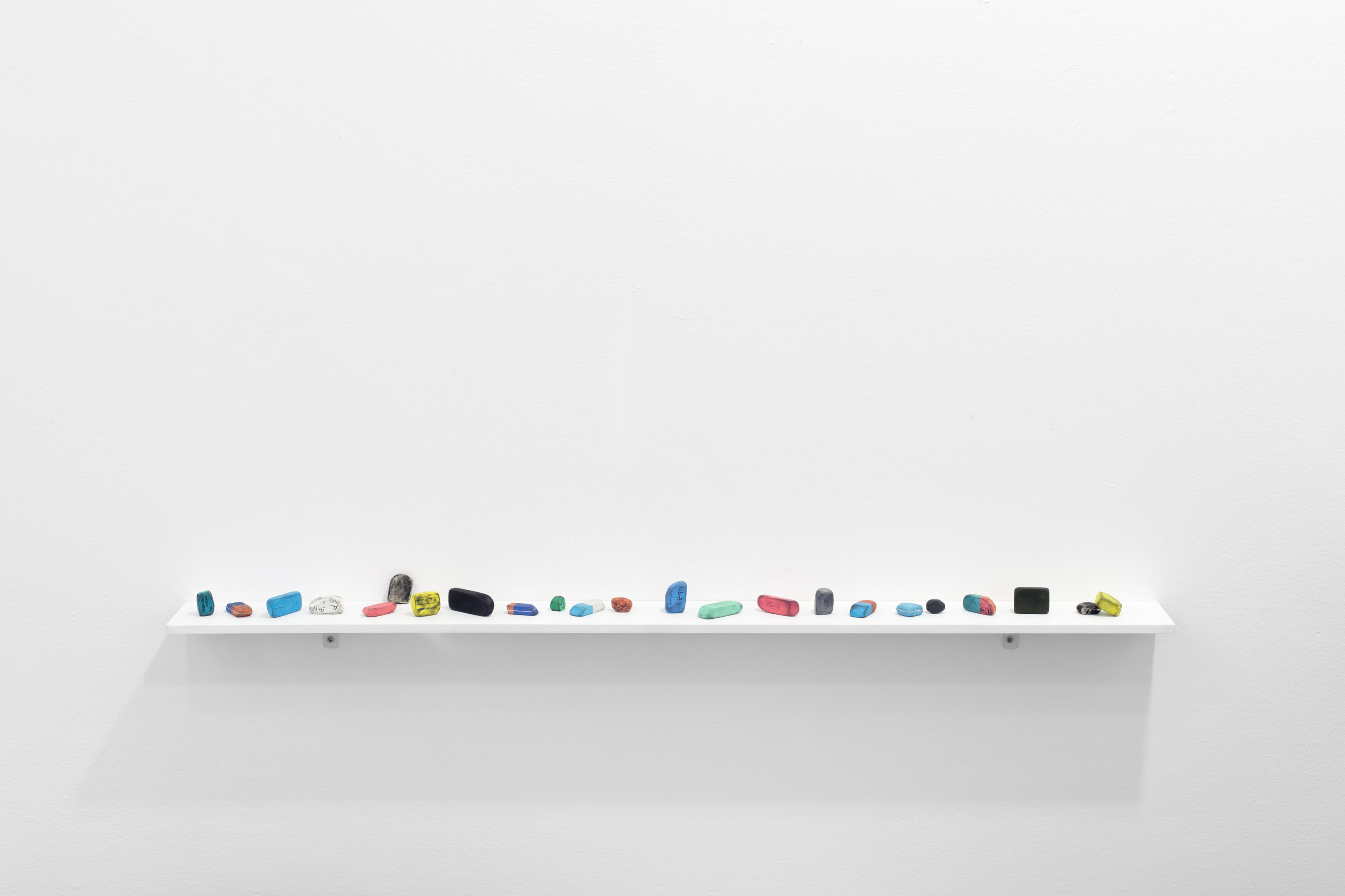 David Adamo is a sculptor ‘avant la lettre’ due to his engagement with form and materiality. His sculptures of chipped away wood for example, express this interest in the materiality of the object very well. These sculptures are often surrounded by the wooden fragments that were chopped off, thereby referring to the creation process of the sculptures. In his humorous small-scale sculptures Adamo plays with the expectations of the audience. These sculptures appear to be everyday objects, but by further examining them it becomes clear that the objects are removed from their traditional context due to the use of impossible materials.