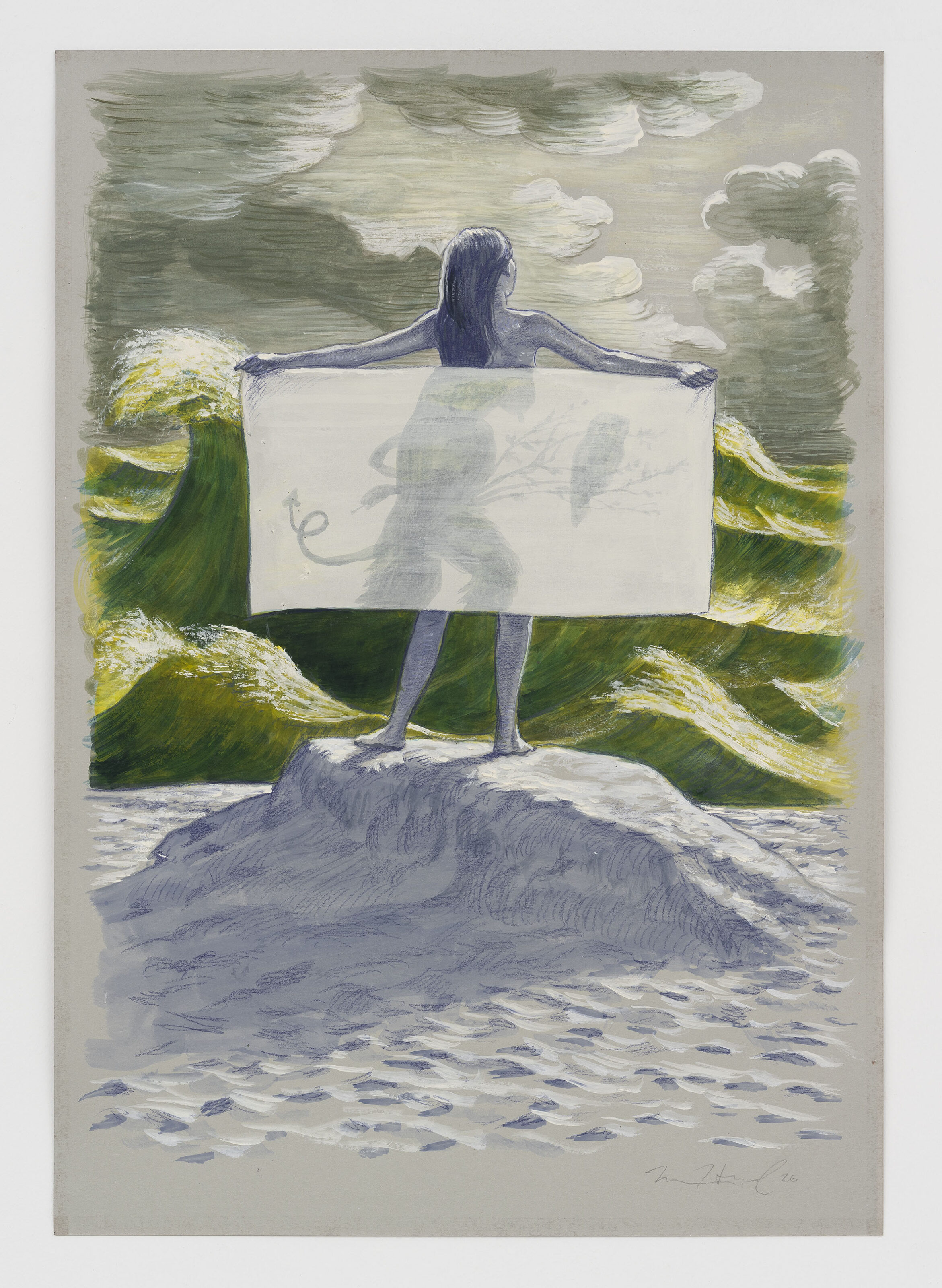 (Artist) Matthew Hansel (Title) A Strange Wind (Year) 2024 (medium) Color pencil, gouache, and water color on paper (Dimensions) 49.5 x 41.9 cm (unframed)