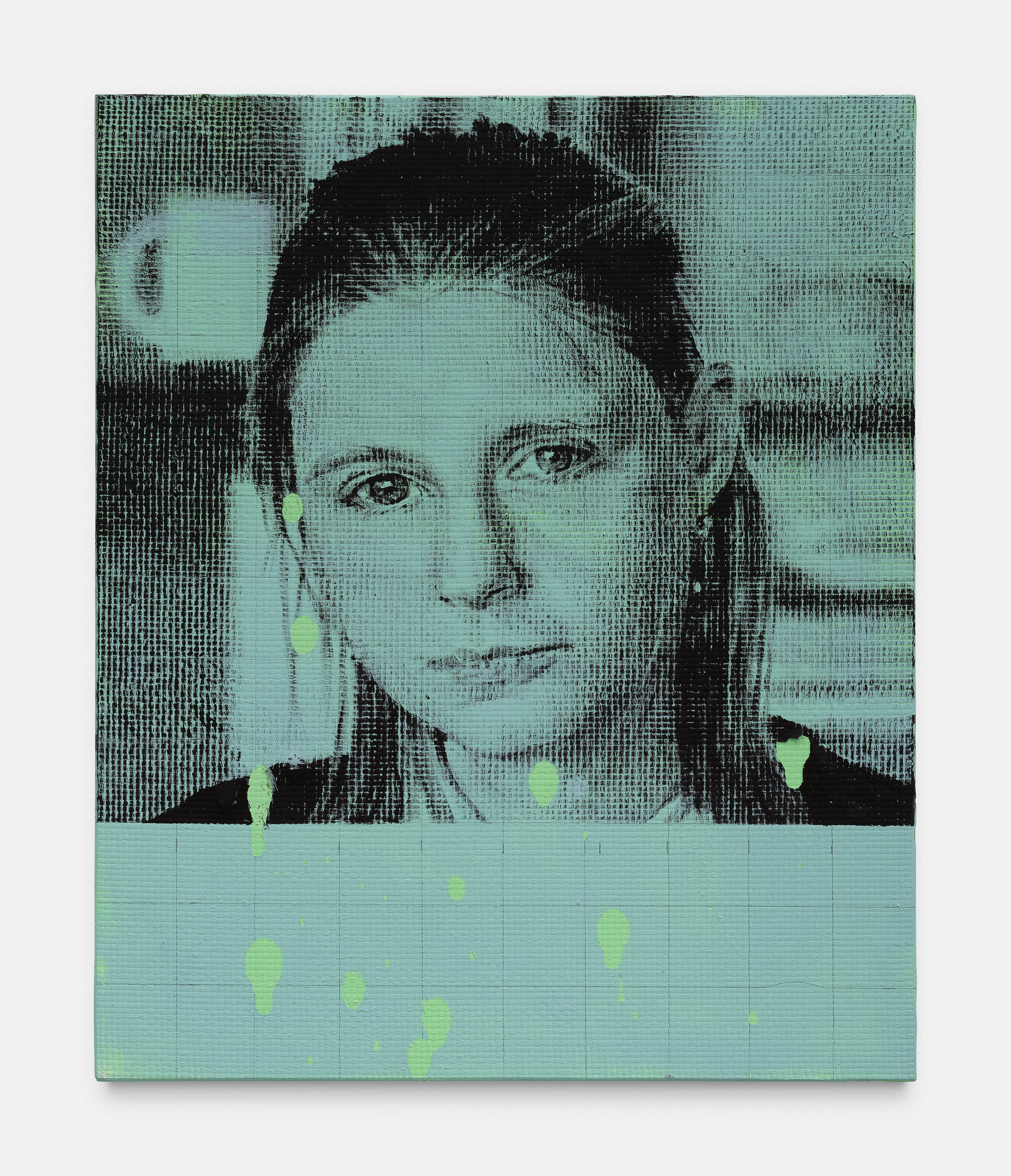 (Artist) Marcel Berlanger (Title) Maryna Viazofska (Year) 2025 (medium) Acrylic and oil on fiberglass mounted on aluminium frame (Dimensions) 34 x 28 cm